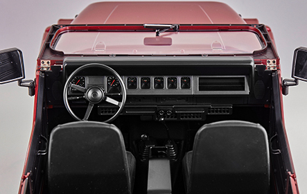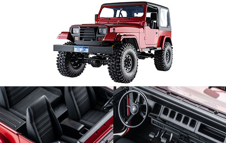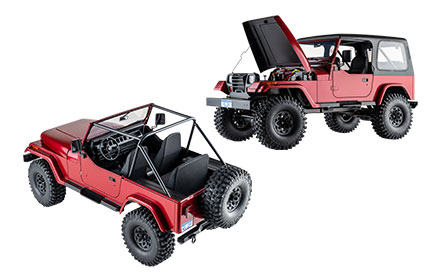 The exquisite interior and four-door full-opening design double the level of detail of this hard-shell RC model, which can be viewed statically or operated indoors. With climbing-level sturdy chassis and suspension system, FMS 1:10 Mashigan make it cool to go wild!